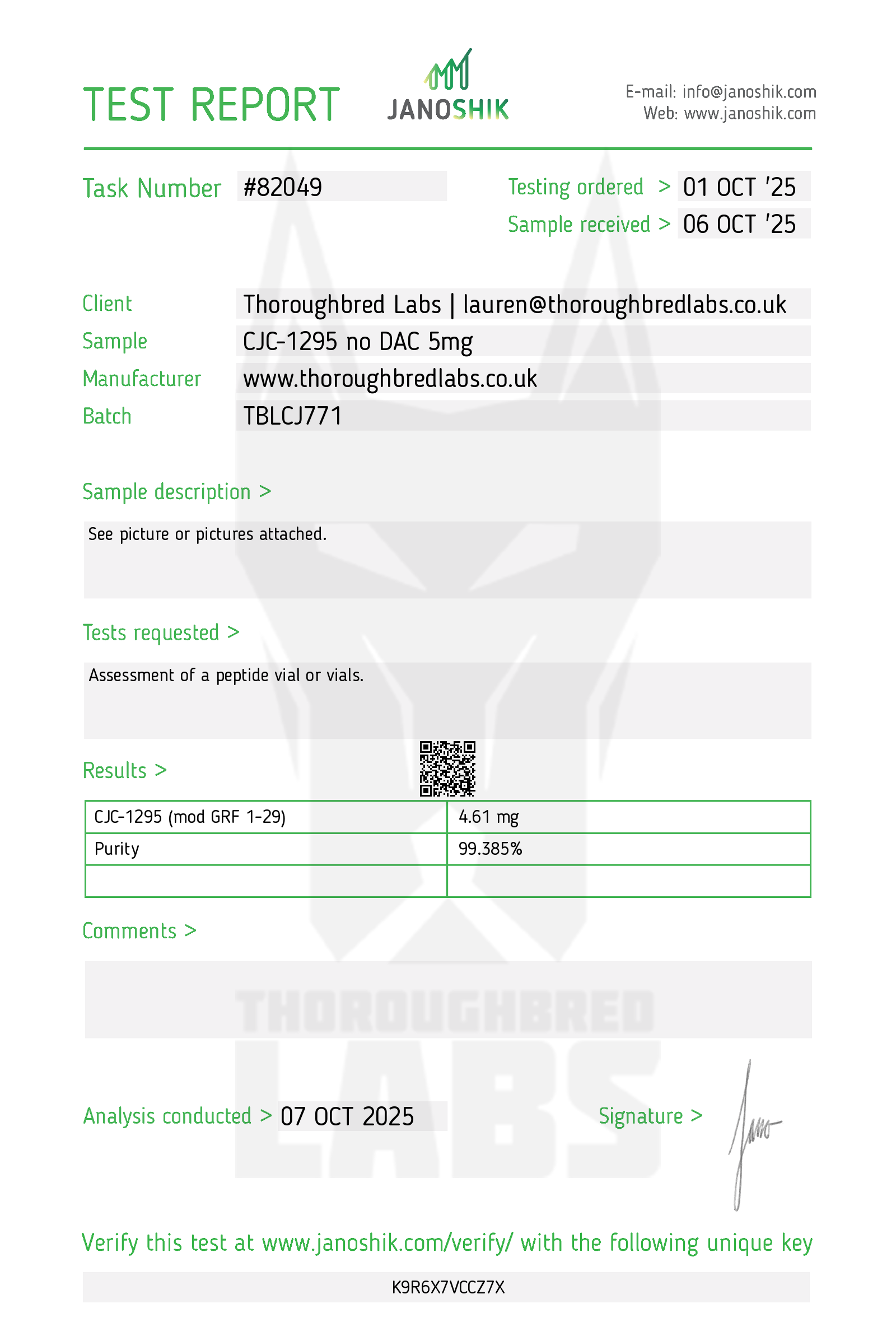 CJC-1295 without DAC is a synthetic peptide analog of growth hormone-releasing hormone (GHRH), provided as a lyophilized powder intended exclusively for laboratory research use.